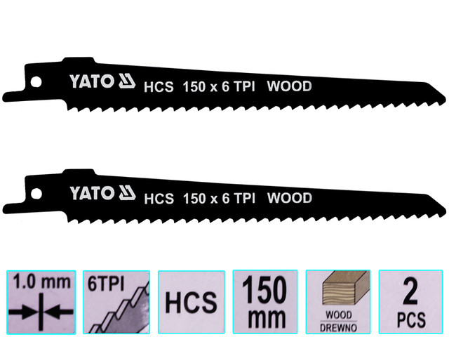 Полотна по дереву для шабельної пили 6TPI 150 мм Yato YT-33922
